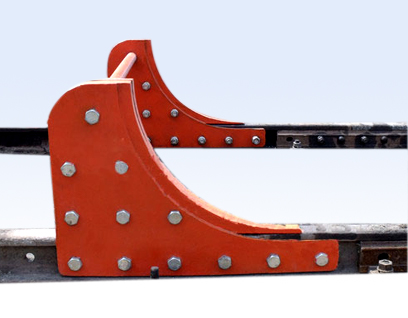 月牙擋車器結(jié)構(gòu)簡(jiǎn)單、維護(hù)方便,占用線路短,成本低,適用于溜逸車輛速度很低的場(chǎng)合。主要用于車輛段庫(kù)內(nèi)線路終端。